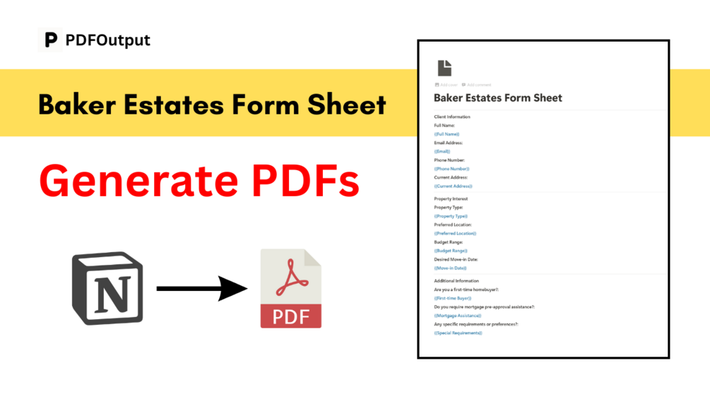 Generate Baker Estates PDFs in bulk from a Notion database using Notion page as a template.