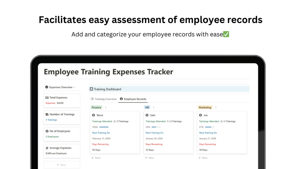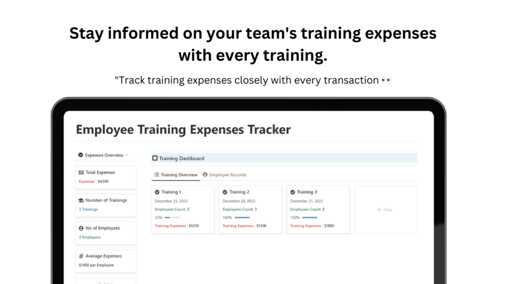 Welcome to our user-friendly Employee Training Expenses tracker which is designed to empower business owners with comprehensive insights to make informed decisions on employee training and its related expenses.