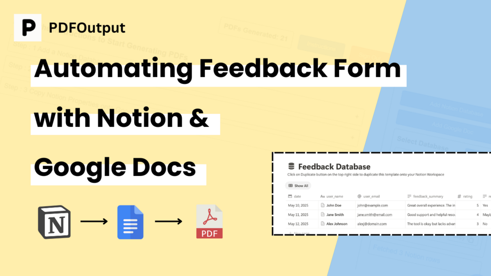 Generate Feedback Form PDFs on automation from a Notion database using Google Doc as a template.