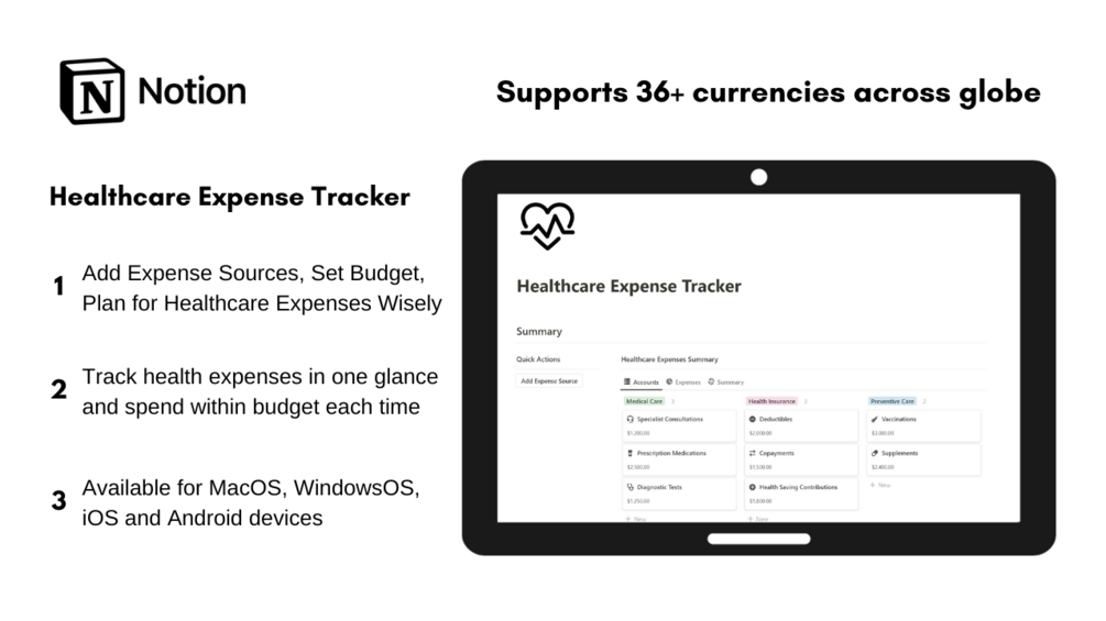 This tool is useful for individuals or families with high medical expenses, this tracker helps monitor healthcare costs, insurance claims, and medical savings accounts.