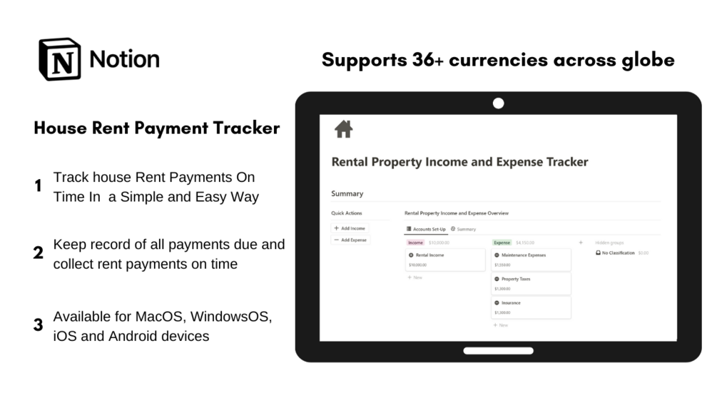 For landlords, it tracks rental income, property-related expenses, and maintenance costs for multiple rental properties.