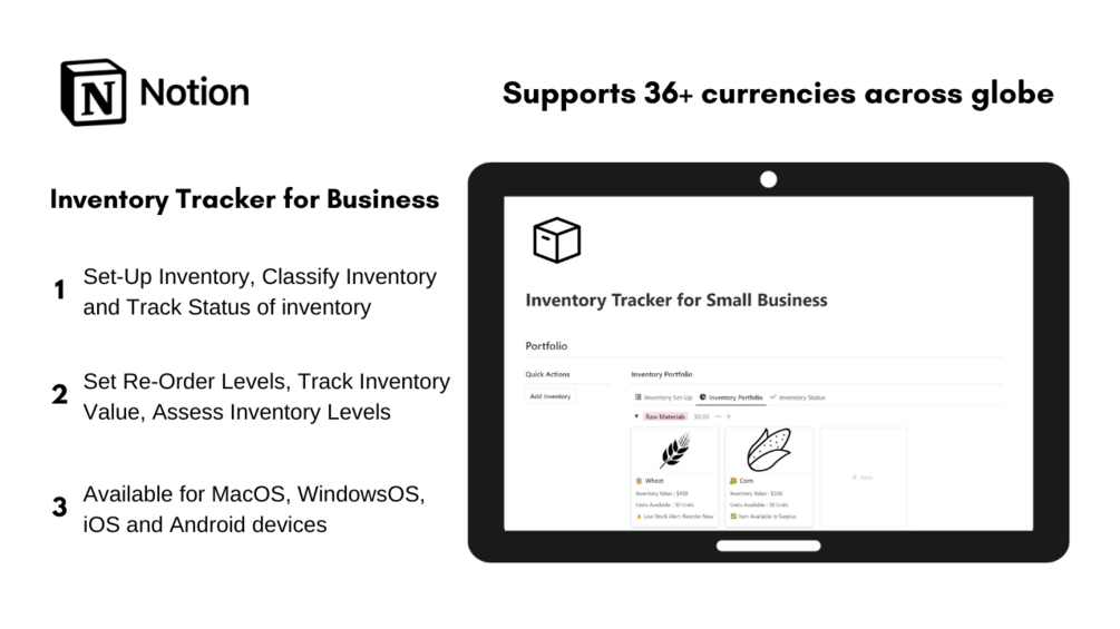 This Notion template is all you need to manage all your inventory like with a simple and easy to use interface setting re-order levels, assigning valuation principles and much more.