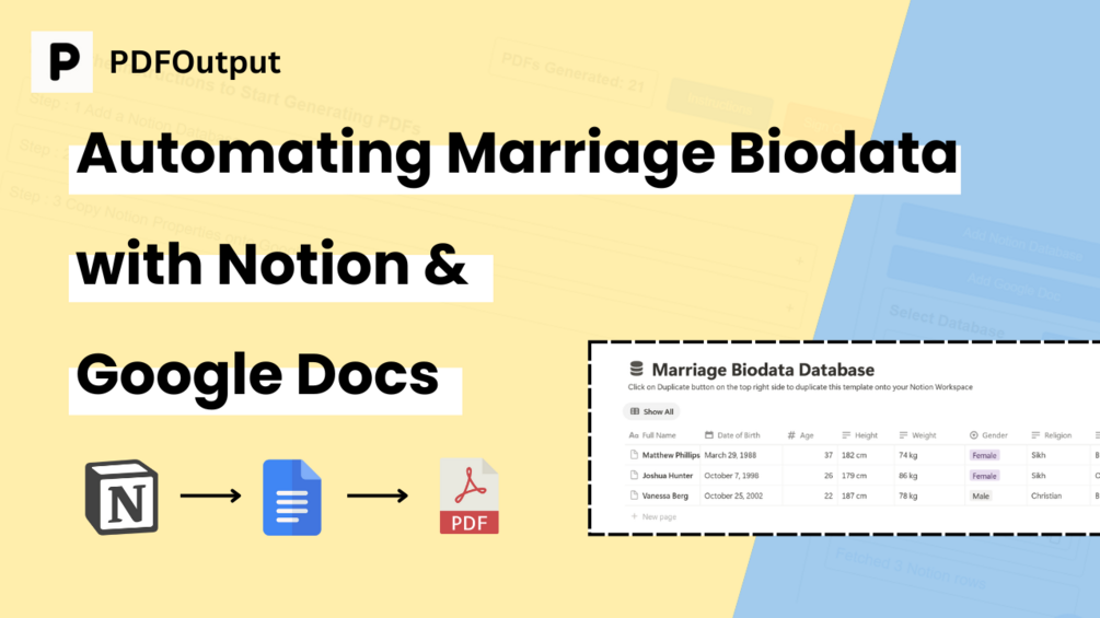 Generate Marriage Biodata PDFs on automation from a Notion database using Google Doc as a template.