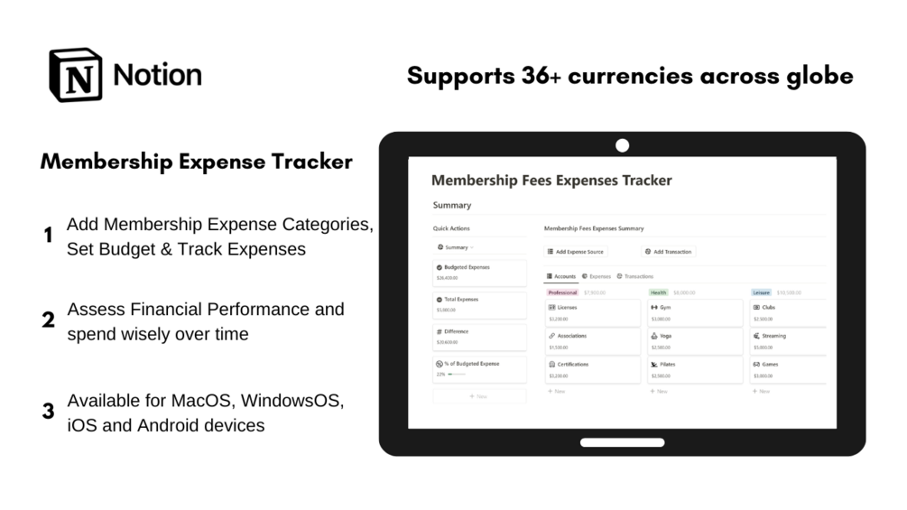 Membership Expense Tracker hasn't provided you with any value? Email notionformyuse@gmail.com; we'll give you a refund within the first 30 days of purchase (for valid reasons).