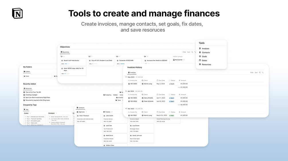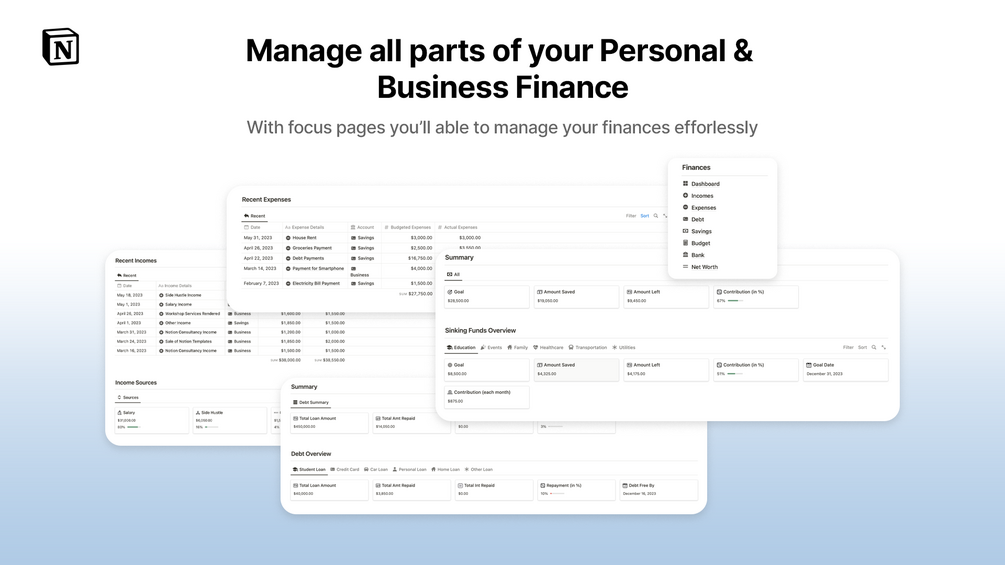 Note: The Notion Ultimate Finance Bundle are a set of individual templates which are used to track for personal finances with their respective use and not interpreted otherwise.