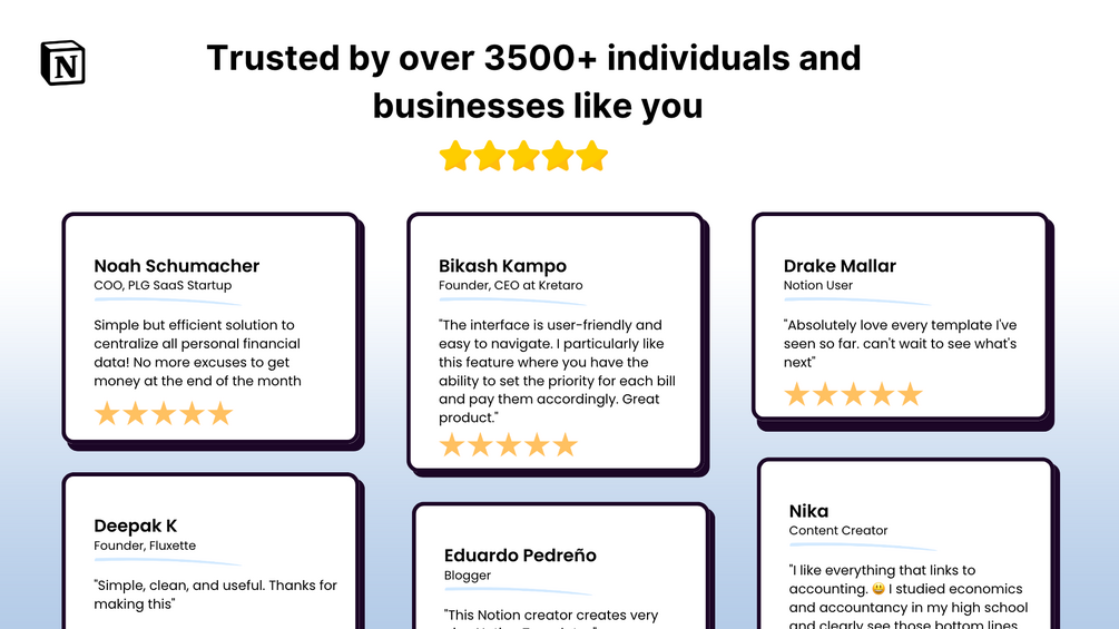 With the Pro Notion template, you'll be able to make smarter financial decisions and stay in control of your finances.