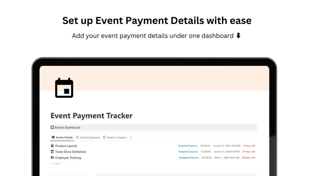 Ideal for those engaged in event planning, whether for work or leisure, this tracker assists you in managing expenses related to events.