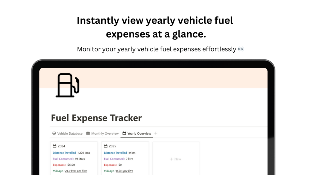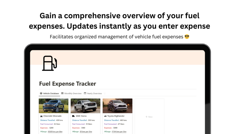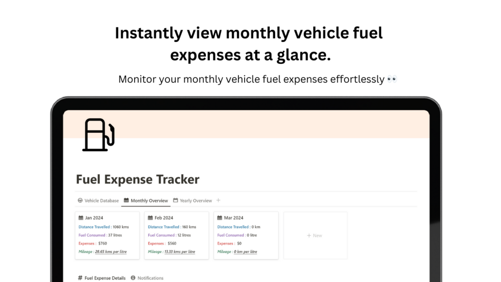 Optimize your fuel expense tracking with a flexible and user-friendly tool, easily incorporating your fuel expenses into Notion workspace.