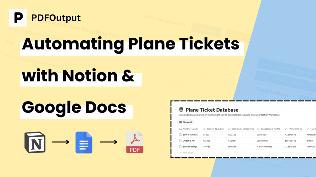 Generate Plane Ticket PDFs on automation from a Notion database using Google Doc as a template.