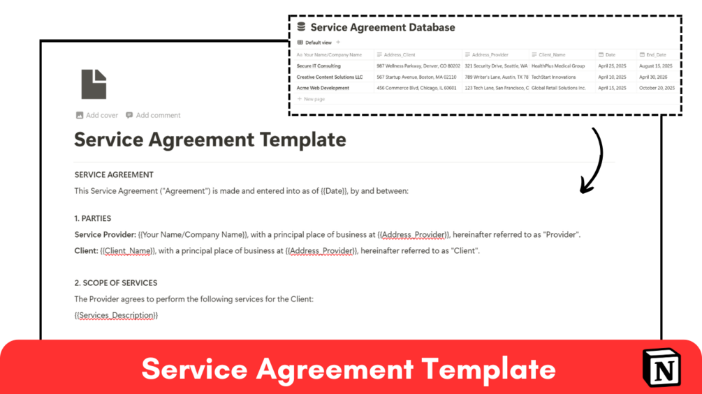 Generate Service Agreements PDFs in bulk from a Notion database using Notion page as a template.